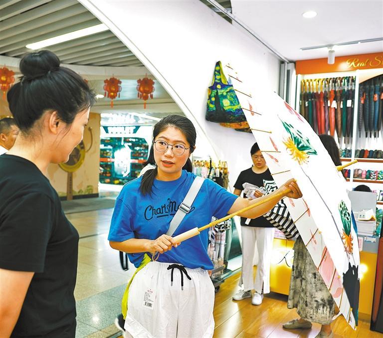 10月15日,浙江省义乌市国际商贸城二区市场,客商在选购雨伞。