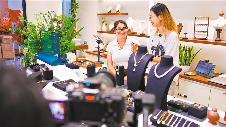 10月14日,商户在义乌全球数贸中心进行海外直播卖货。这里的3700余户“新摊主”,早已跳出传统经营范式,成为懂AI、善用AI的“数字经营能手”。