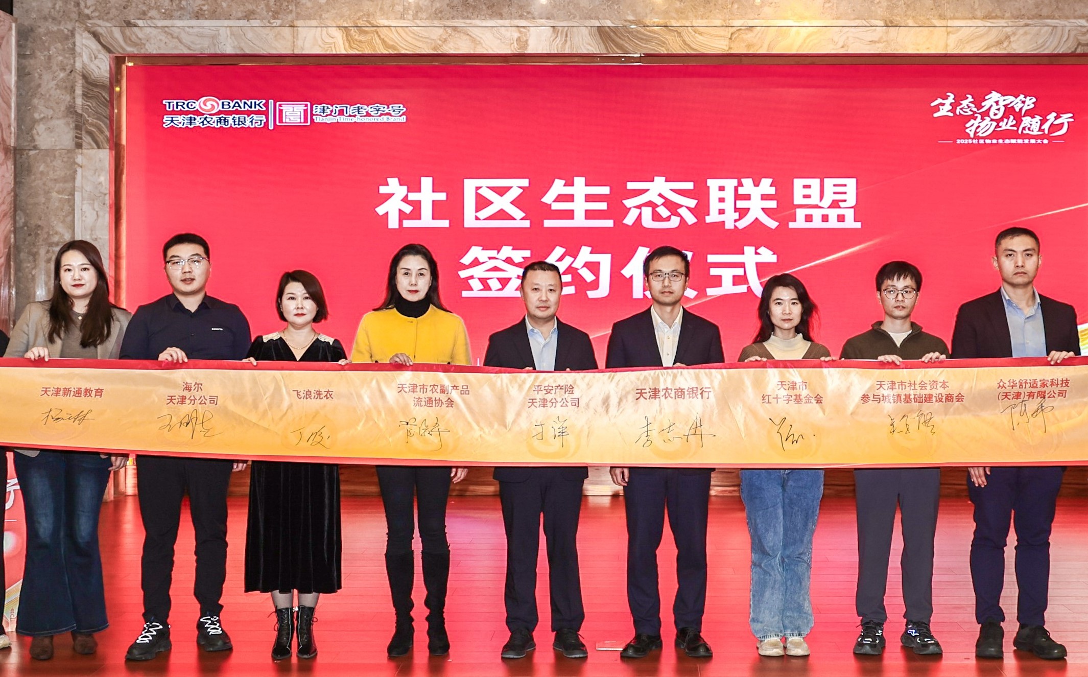 在与会嘉宾的共同见证下,天津农商银行与7家物业企业及社区代表现场签署合作协议,共同探索“金融+社区+生态”融合发展的创新模式。为推动社区服务向生态化、系统化方向升级,大会同步发起成立“社区生态联盟1.0”。天津农商银行联合多家优质生活服务企业,共建覆盖居民生活多场景的服务网络,形成“银行+物业+生态伙伴”三方协同、互利共赢的新格局。