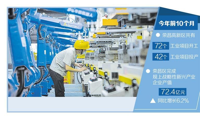 在荣昌高新区,鑫胜华铜业等一批项目正加速建设。聚焦智能网联新能源汽车零部件及智能制造、新材料等战略性新兴产业和未来产业,荣昌高新区构建起了产业集群发展格局,形成了“龙头企业引领、中小企业协同、创新生态支撑”的良性发展模式。“以重点项目引领支撑新质生产力发展,工业经济跑出加速度。”荣昌高新区发展促进中心主任唐昌祥介绍,今年前10个月,荣昌高新区共有72个工业项目开工,42个工业项目投产。全区完成规上战略性新兴产业企业产值72.4亿元,同比增长6.2%,高于规上工业总产值增速3.3个百分点。